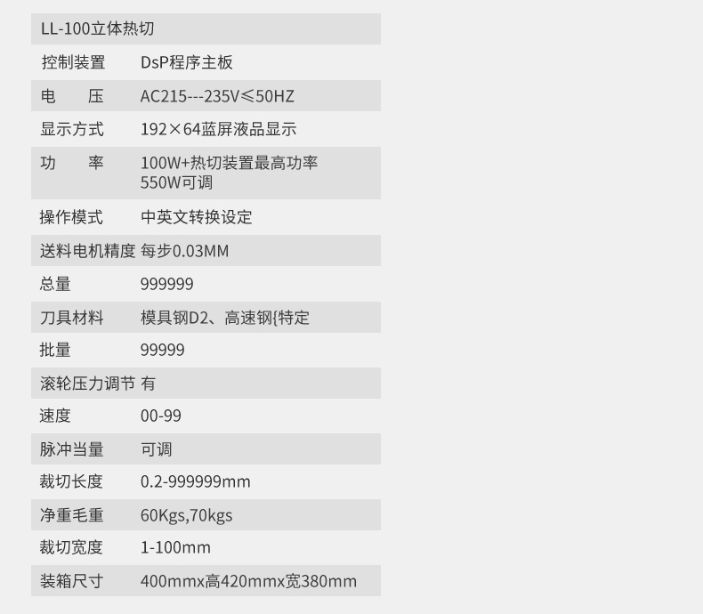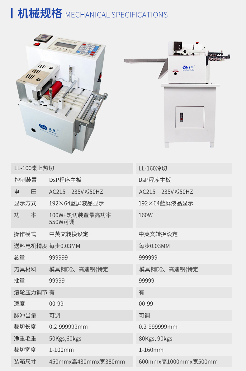 LL-100桌上全數(shù)字智能切斷機(jī)(熱切型)/(冷切型) 產(chǎn)品說(shuō)明: 本機(jī)采用全數(shù)字智能控制裝置,按鍵操作,同時(shí)可任意設(shè)定切斷長(zhǎng)度/數(shù)量、送料速度、且裁切精度準(zhǔn)確、耗損少、機(jī)型設(shè)計(jì)符合人體工學(xué)原理操作簡(jiǎn)單,廣泛適用于織帶、拉鏈、...